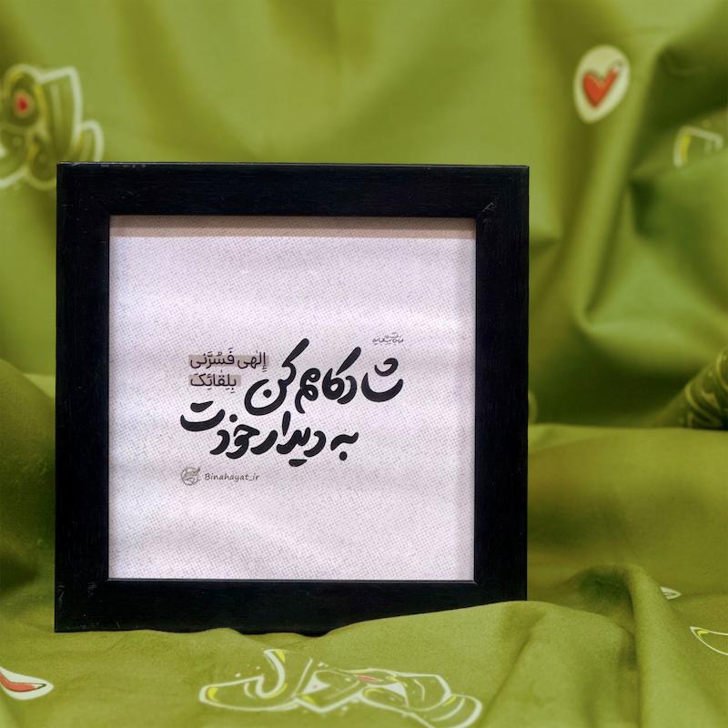 قابِ مینیمالِ “شادکامم کن به دیدار خودت” که با خطی خوشسیما و برازنده نوشته شده