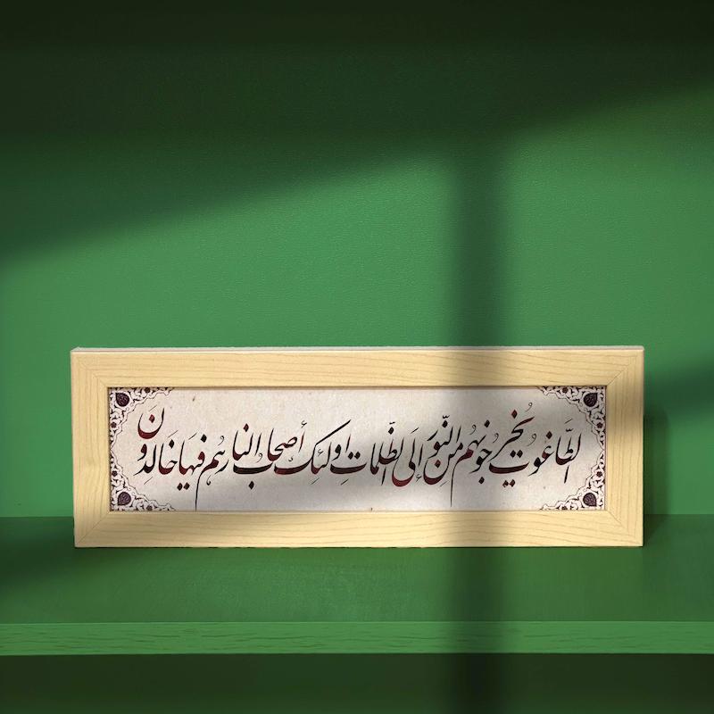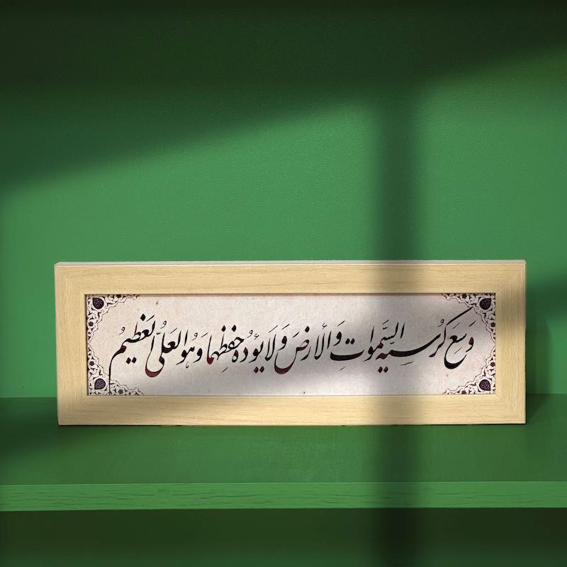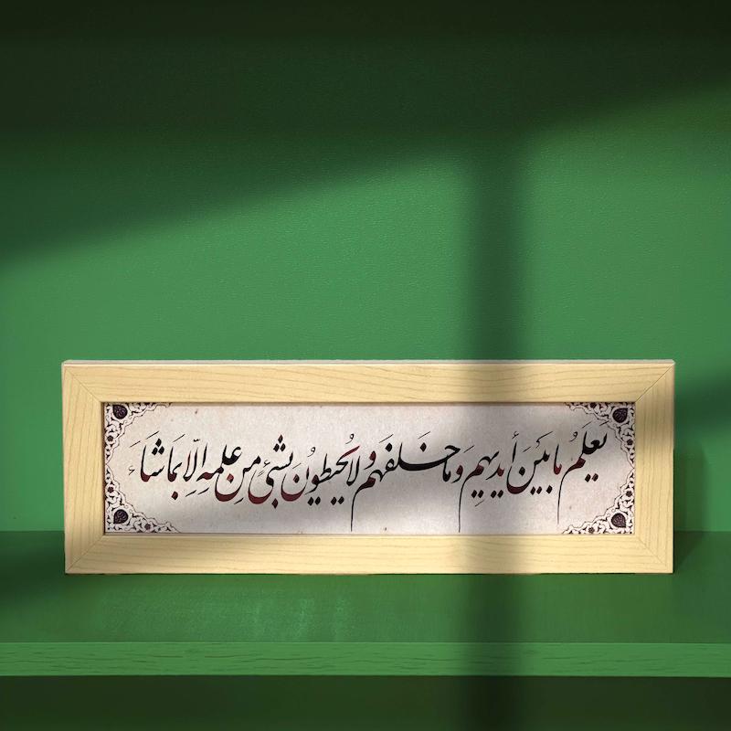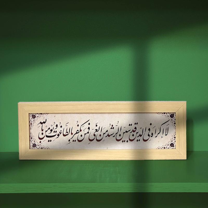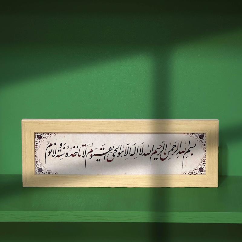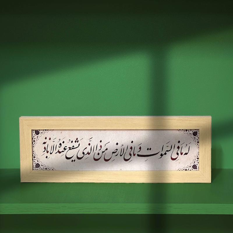 آن را در هشت قاب (آیه اول را در چهار قسمت و بقیه را نیز در چهار قسمت) با خط زیبا بنویسند